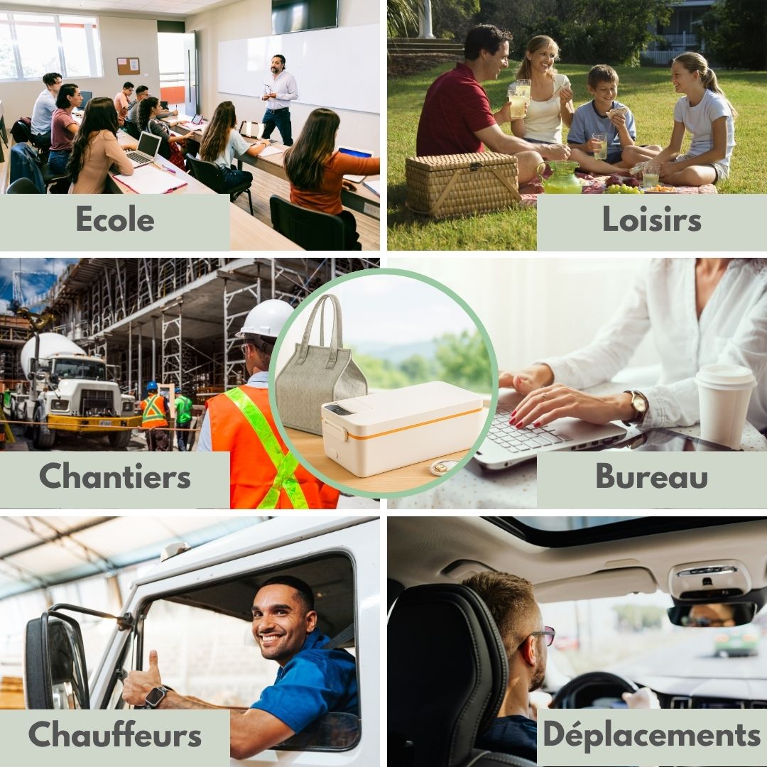 Réchauffez vos plats partout — au bureau, dans la voiture ou en plein air — et profitez d’une autonomie totale pour savourer vos repas à votre rythme.